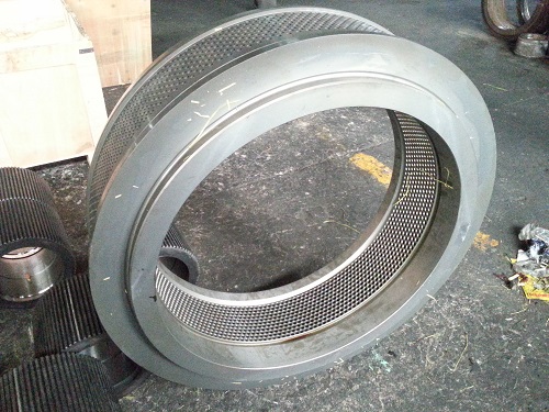 首先,在選用優(yōu)質(zhì)環(huán)模的前提下,應(yīng)根據(jù)生產(chǎn)物料的比重,選用合適的??仔问健㈤_孔率及壓縮比。在保證環(huán)模強度的前提下,盡量提高環(huán)模的開孔率,對于有些品種的物料,在保證合理壓縮比的條件下,環(huán)模過于壁薄,以致環(huán)模強度不夠,生產(chǎn)中會出現(xiàn)爆?,F(xiàn)象,應(yīng)當(dāng)在保證??子行чL度的前提下,增加環(huán)模的厚度和增開減壓孔。